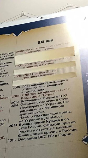 На одном из баннеров в павильоне "Россия — моя история" на ВДНХ заклеили даты, связанные с кризисными событиями в новейшей российской истории.