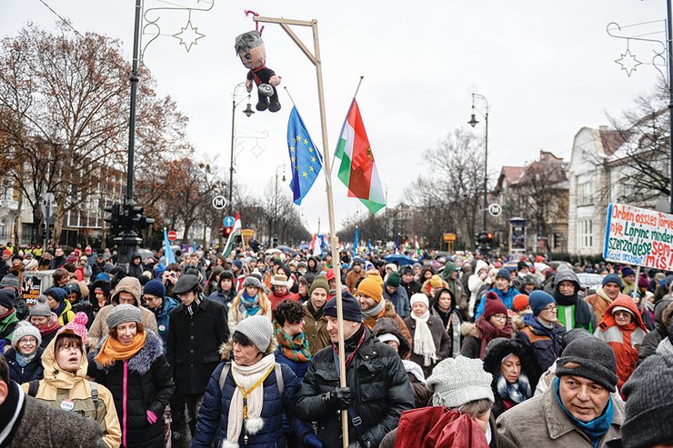 В Венгрии профсоюзы пригрозили премьер-министру Виктору Орбану общенациональной забастовкой из-за изменений в трудовом кодексе, которые медиа страны окрестили "рабским законом". В акции протеста, состоявшейся 5 января в Будапеште, наряду с общественностью приняли участие политики основных оппозиционных партий. Депутат парламента Бернадетт Шел заявил: "Мир не может принадлежать популистам, Венгрия не может принадлежать Виктору Орбану".