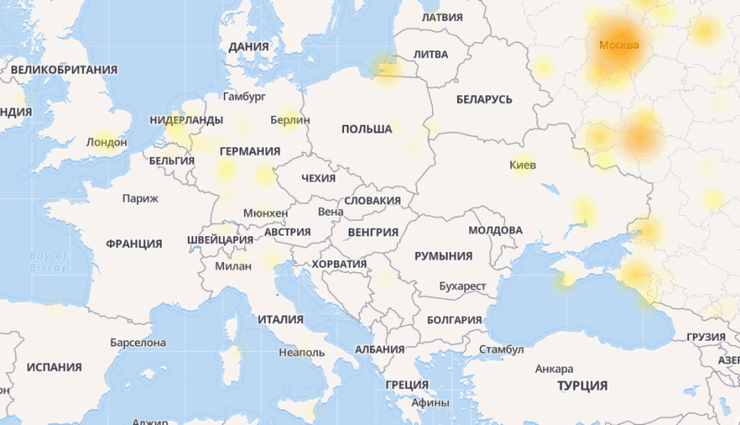 На технические неполадки жаловались пользователи из Украины, Нидерландов, Германии, Франции, Великобритании и России