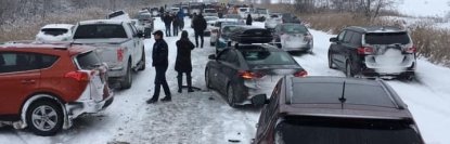 Причиной масштабной аварии стала плохая погода: метель и гололедица.