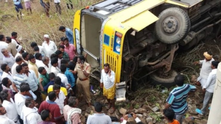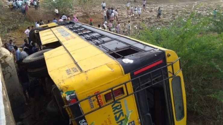 "Школьный автобус с 50 детьми перевернулся сегодня утром в районе Гунтур в штате Андхра-Прадеш, в результате чего 20 человек получили ранения", - говорится в сообщении.