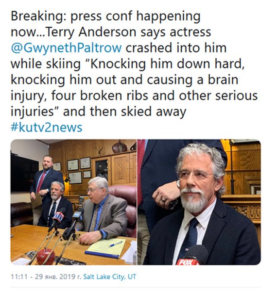 В итоге мужчина получил перелом ребер и сотрясение мозга. Ему потребовалось без малого три года, чтобы довести дело до суда. 72-летний окулист из Юты требует от Гвинет Пэлтроу 3,1 миллиона долларов за нанесение телесных повреждений. Сюда входит моральный ущерб и траты на лечение.
