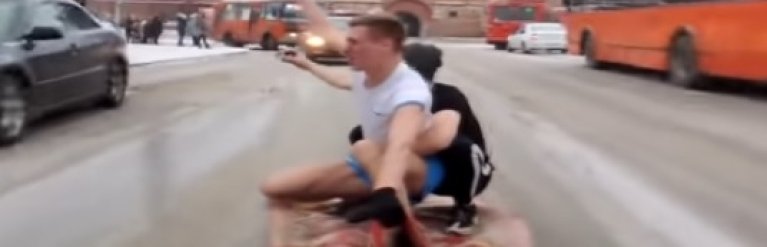 "В результате проверки информации, размещенной в СМИ 25 января 2019 года, сотрудники полиции установили, что житель Сормовского района областного центра осуществлял на прикрепленном к своему автомобилю текстильном изделии в виде ковра перемещение своих приятелей по проезжей части в Нижегородском районе", – говорится в сообщении.