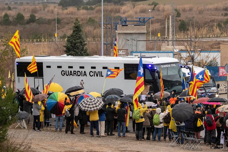 Лидеров каталонских сепаратистов под конвоем испанской Гражданской гвардии переводят из тюрьмы в Барселоне в Мадрид, где вскоре начнется судебный процесс против организаторов референдума о независимости Каталонии.