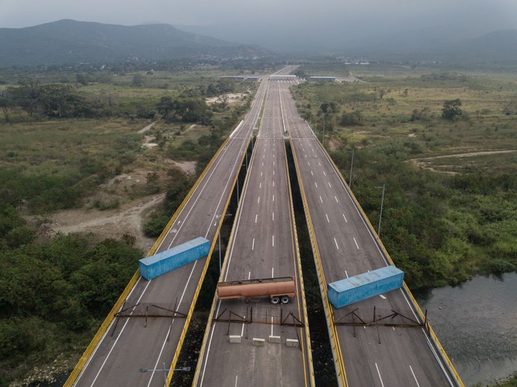 Мост Las Tienditas на границе с Колумбией, перегороженный по указку президента Венесуэлы Николаса Мадуро.