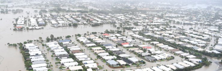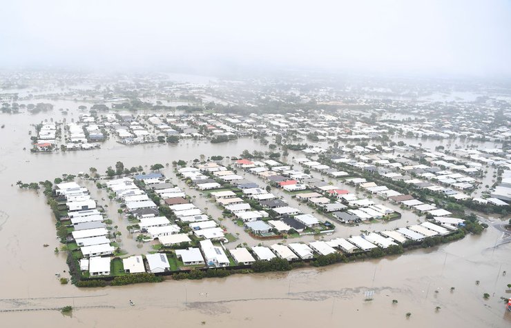 Вид сверху на город Таунсвилл. Городские власти намеренно открыли дамбу на реке Росс, чтобы снизить ущерб от наводнения из-за проливных дождей. В результате было затоплено около 2000 домов.