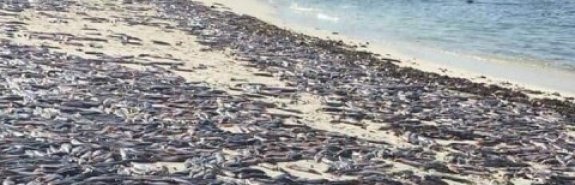 Это необычное явление местные жители сняли на видео. На кадрах видно огромное количество тушек моллюсков.