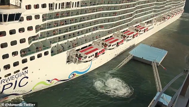 Круизный лайнер компании Norwegian Cruise Lines занесло на причал в Пуэрто-Рико после того, как он прибыл в порт для проверки. Про это пишет Daily Mail.