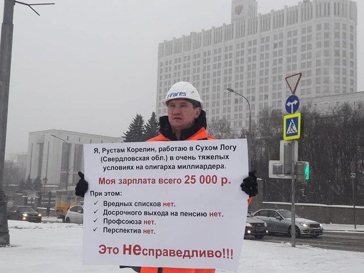 Корелин вышел на одиночный пикет в середине января: он пожаловался на "несправедливую зарплату" в 25 тысяч рублей.