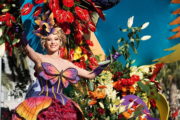 Самый утонченный карнавал в Европе проводят в Ницце. Его посетители могут насладиться и мягкой, теплой погодой французской Ривьеры, и разнообразными увеселениями. В Ницце проводят три типа парадов, которые чередуют каждый день. В светлое время традиционный цветочный парад — платформы обильно украшают цветами, вес которых достигает четырех тонн. В наряды с бутонами одеты "королевы" на каждой платформе, в руках у них букеты, цветы из которых бросают в толпу зрителей. А те, в свою очередь, должны вернуть полученный цветок обратно.