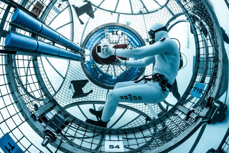 Астронавт тестирует модуль Esprit, разработанный компаниями Comex и Airbus для Лунной орбитальной платформы NASA.