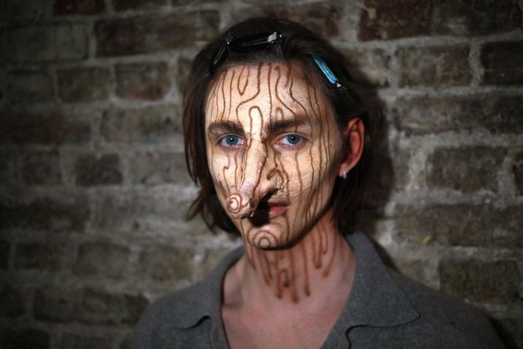 Модель за кулисами перед показом Вивьен Вествуд на London Fashion Week.