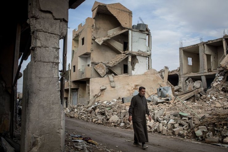 Мирные жители в Сирии постепенно возвращаются в города, недавно освобожденные от террористов ИГИЛ. Город Хаджин, 16 февраля.
