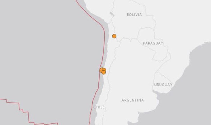 "Чили сегодня пострадала от четырех отдельных землетрясений, в результате столкновения тектонических плит в Тихом океане", - говорится в сообщении.