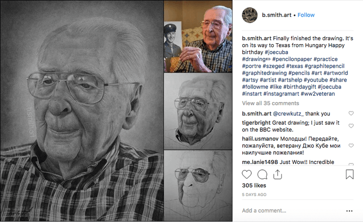 Художники решили отправить Джо его портреты, а также поблагодарить его за военную службу. Он был техническим сержантом в военно-воздушных силах армии США.