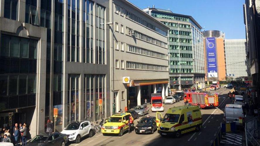 "Около 40 человек были эвакуированы из здания недалеко от штаб-квартиры Европейского Союза в Брюсселе после звонка об угрозе взрыва, которое было отправлено в компанию, связанную с ЕС", - сказано в сообщении.