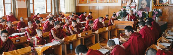 Единственное требование к ученику — развивать интерес к учебе. Ученик имеет право проверять учителя и должен все подтверждать логикой. В тибетской философии есть тезис о том, что нельзя принимать на веру все, что тебе говорят. Поэтому дебаты у тибетцев происходят на трех уровнях: что я думаю, что я делаю и что я говорю. В этих трех измерениях участники дебатов задают друг другу вопросы по самым разным темам, это позволяет воспитать критическое мышление. Задача того, кто задает вопросы, — подвести отвечающего к логической несостыковке в том, что он думает, делает и говорит.