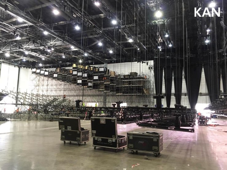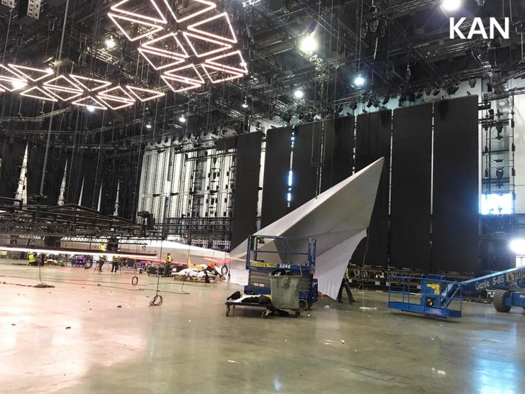 Как сообщает израильская вещательная корпорация "Кан", в настоящее время строительная бригада в Expo Tel Aviv работает над созданием треугольной сценической конструкции. Работы планируют окончить до конца апреля.