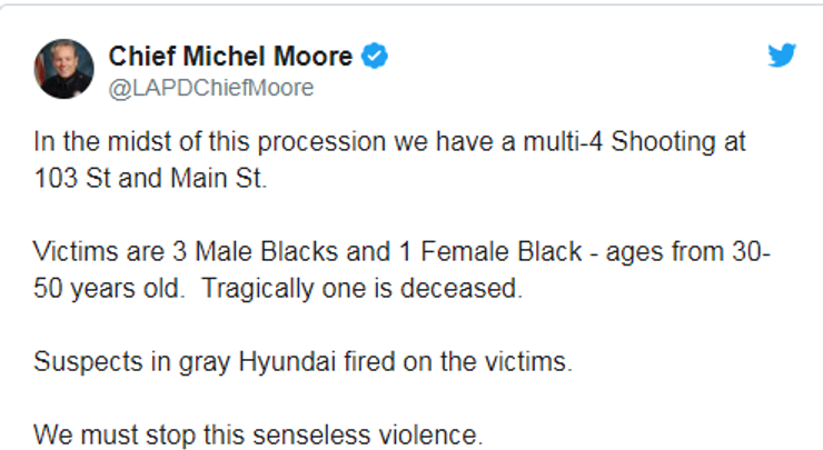 Об этом сообщает Мишель Мур, шеф полиции LA в официальном Twitter.