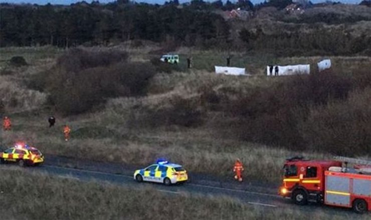Самолет упал на поле для гольфа в графстве Мерсисайд. Пилот погиб на месте. Его личность пока не идентифицирована.