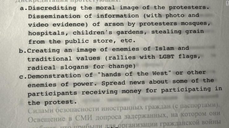 По данным СМИ, преследования мирных жителей, дезинформация в соцсетях, обвинения Израиля в разжигании беспорядков являлись планом российских экспертов по подавлению протестов. В него входили даже публичные казни, подчеркивается в статье.