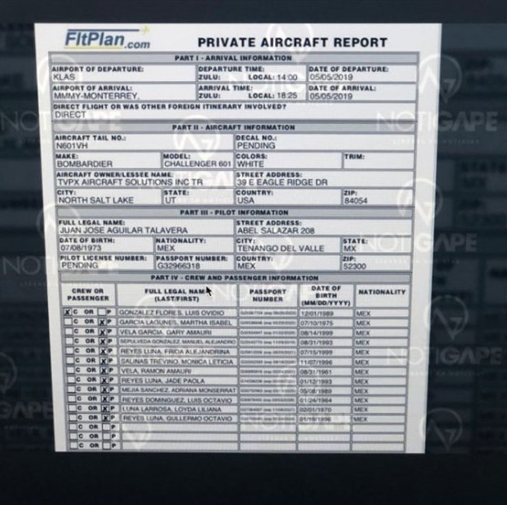Судно направлялось из американского Лас-Вегаса в мексиканский Монтеррей. Пассажиры возвращались после просмотра бокса.