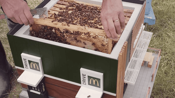 "Макдоналдс" построил в Швеции миниатюрную версию своего типичного ресторана, только это улей для пчелок.