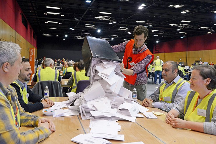 Европа на бюллетене. Подсчет голосов на выборах в ЕП в Эдинбургском международном конференц-центре, Шотландия
