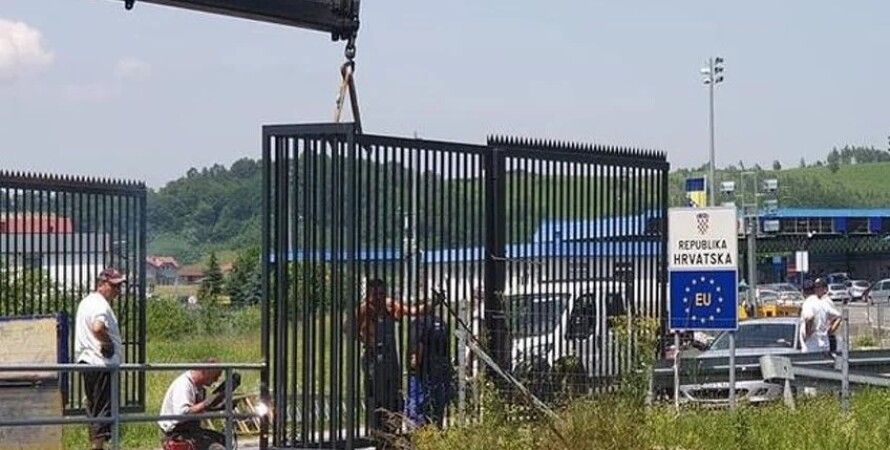 Большой забор с шипами установили в пункте пропуска Малевац на мосту, который ведет на территорию Хорватии.