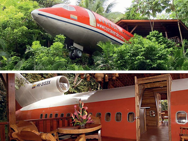 Отель на тихоокеанском побережье Коста-Рики предлагает разные типы номеров, самые поразительные из них находятся в фюзеляже самолета. Собственники выкупили списанный Boeing 727 1965 года выпуска, перевезли его в джунгли и превратили в жилище с двумя спальнями и террасой на правом крыле. Самолет установили на плато, с 50-метровой высоты вы можете обозревать закаты на океане, близлежащий пляж Эспадилья и леса Национального парка Мануэль Антонио. Девиз отеля: "Здесь больше обезьян, чем людей", постояльцы живут посреди дикой природы. Поэтому будьте аккуратны и не оставляйте вещи на террасе, ведь их может позаимствовать какой-нибудь любопытный примат.