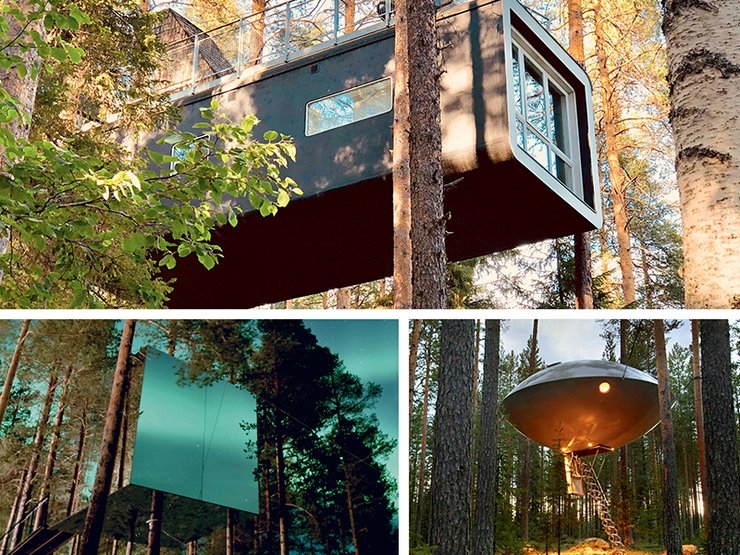 Если вы хотите реализовать детскую мечту и пожить на дереве, то вам помогут в этом в Лапландии. В сосновом лесу, в 50 километрах от полярного круга, есть гостиница Treehotel, которую построила супружеская пара — Кент и Бритта Линдваль. На самом деле Treehotel — семь построек на высоких сваях и платформах среди деревьев. Они спроектированы шведскими архитекторами в разных стилях, поэтому вы можете выбрать "зеркальный куб", "птичье гнездо", "летающую тарелку" или "бабочку". Каждая постройка вмещает в себя один номер — приватность обеспечена. Впрочем, в наличии есть и стандартное жилье на шесть номеров. Лапландцы предлагают летом гулять по тундре или сплавляться по реке Лулеельвен, а зимой любоваться северным сиянием и кататься на собачьих упряжках.