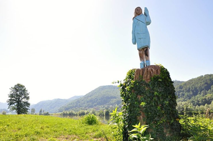 Ранее в Словении появилась деревянная статуя Меланьи Трамп. Статуя изображает первую леди США в полный рост в голубом платье и сапогах того же цвета.