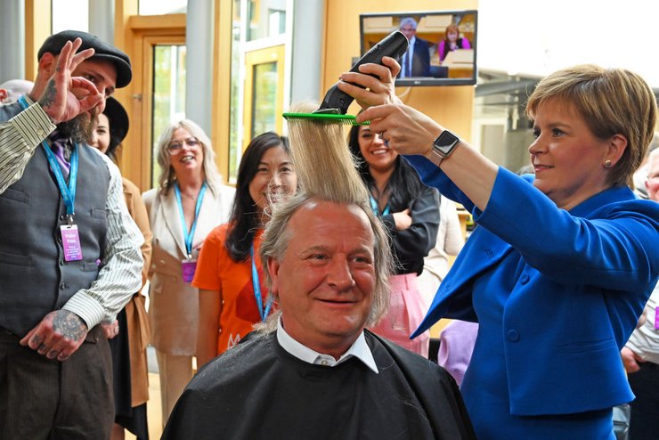 Первый министр Шотландии Никола Стерджен поработала парикмахером в рамках акции в поддержку сети благотворительных онкологических центров Maggie's. Подстригла она депутата и своего соратника по Шотландской национальной партии Дэвида Торренса.