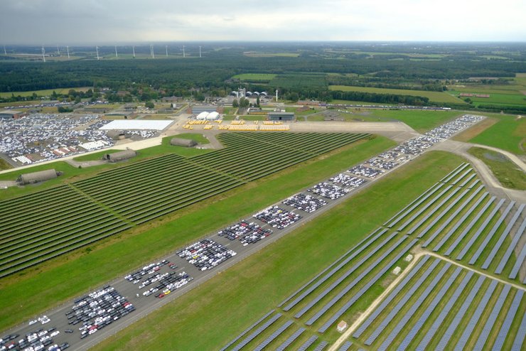 В закрытом аэропорту Альхорн близ Бремена в Германии в окружении солнечных панелей хранятся тысячи внедорожников Mercedes, которые из-за проблем с поставщиком не были вовремя доставлены в точки реализации.