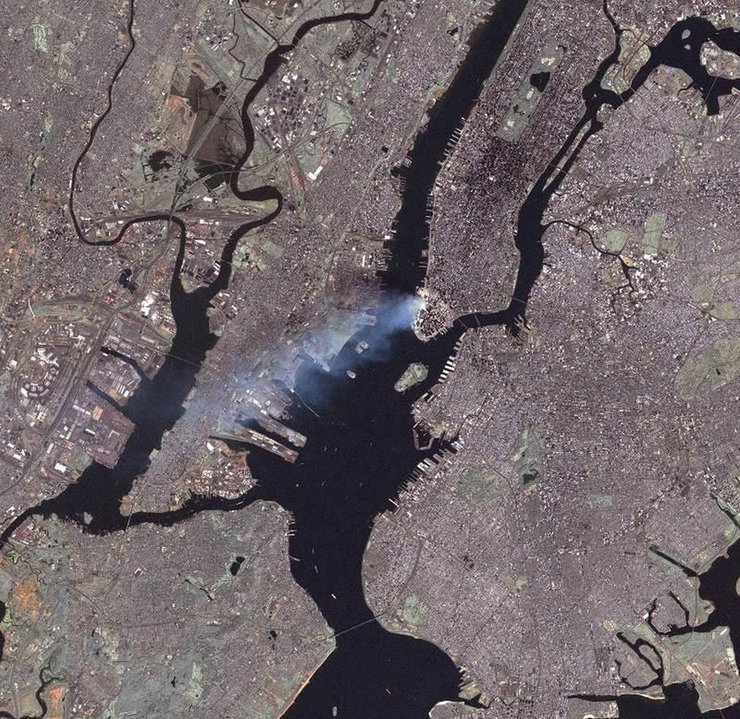 Столб дыма над руинами ВТЦ был виден из космоса.