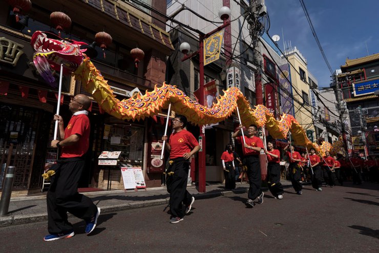 В японском городе Иокогама китайская диаспора также отметила 70-летие основания КНР, станцевав танец дракона. Помимо этого, Япония является одним из самых популярных туристических мест среди китайцев в этот праздник. Фото: Getty Images