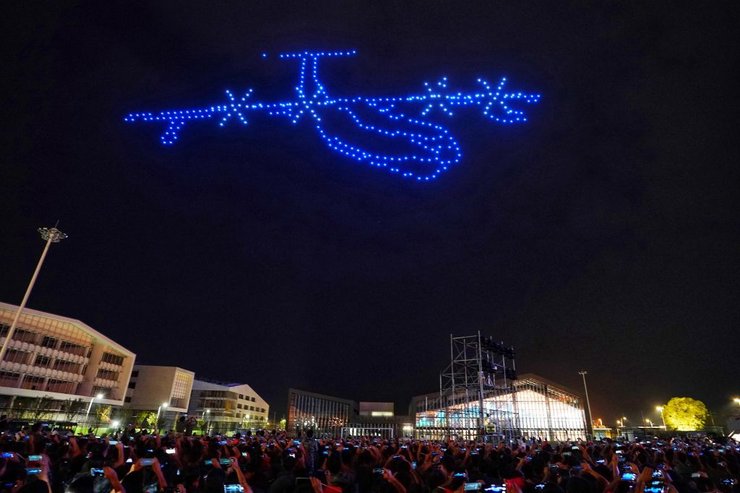 17 сентября в честь 70-летия КНР над озером Тяньму прошло шоу дронов, созданных студентами Нанкинского университета аэронавтики и космонавтики. Летательные аппараты выстраивались в небе в различные узоры – от числа 70 до фигур самолетов.