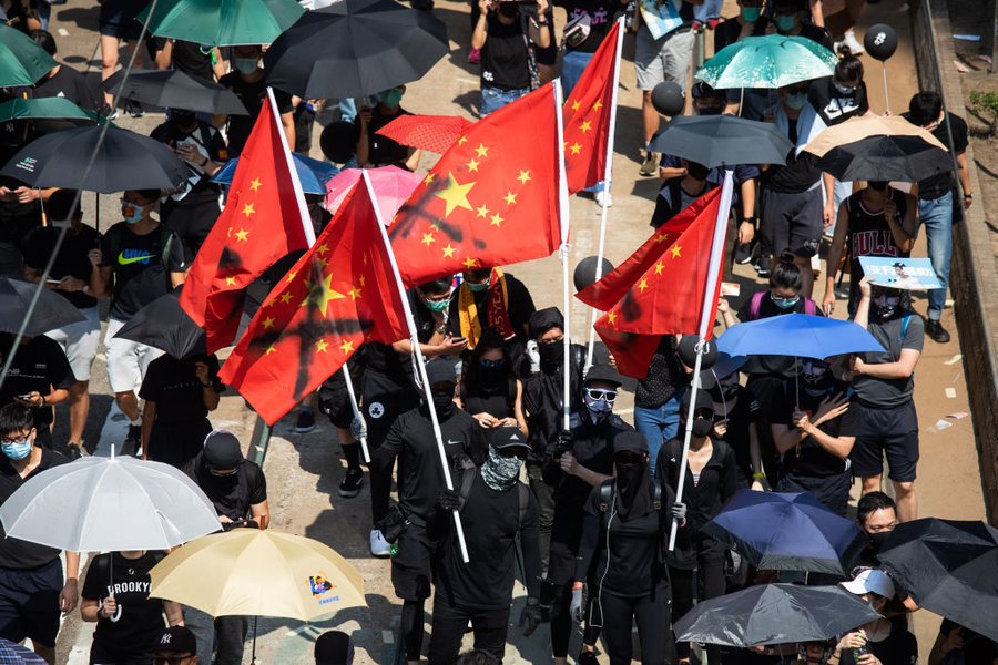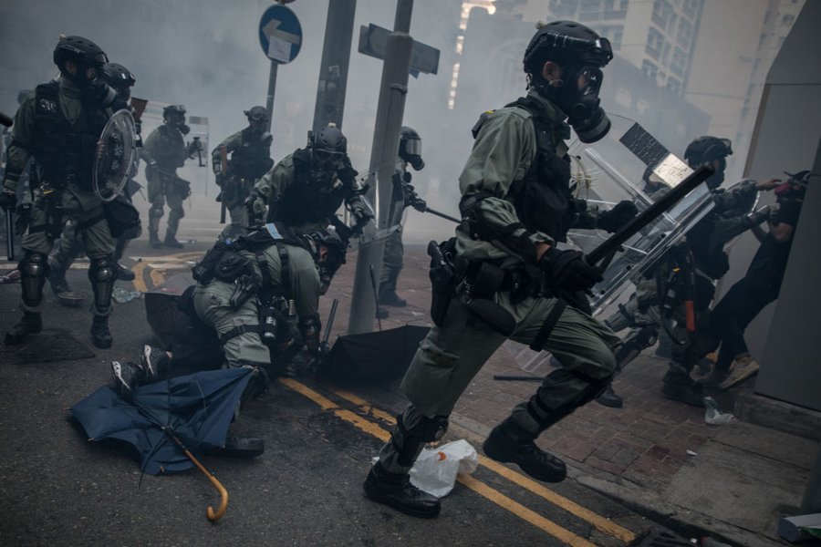 В это же время, в Гонконге вместо праздничных мероприятий, с новой силой вспыхнули антиправительственные протесты. Митингующие в День образования КНР вышли на улицы с антикитайскими лозунгами и флагами КНР, стилизованными под свастику, а после вступили в ожесточенные столкновения с полицейскими. Демонстранты бросали "коктейли Молотова", а правоохранители в ответ применили водометы и даже огнестрельное оружие. В результате пострадали десятки человек, а один из протестующих погиб. Это первая смерть за более чем четыре месяца протестов в городе.