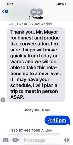Затем Джулиани опубликовал другой скрин переписки с Волкером и Андреем Ермаком.