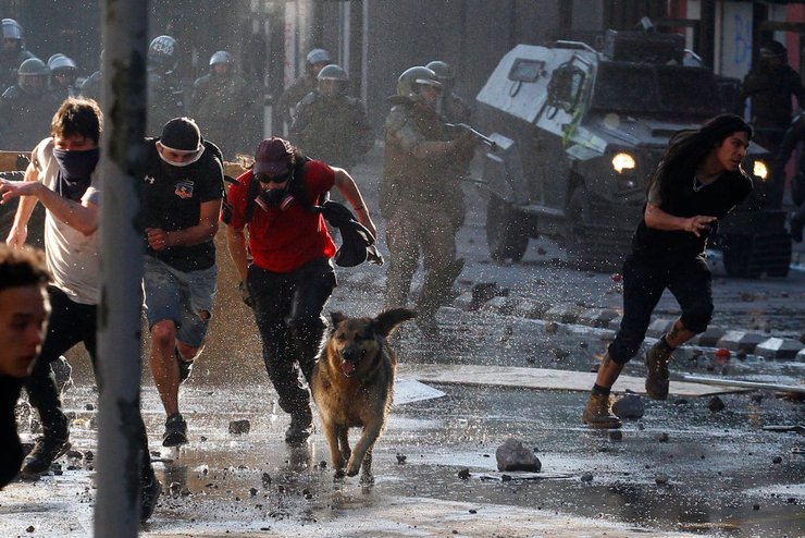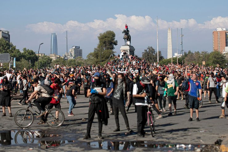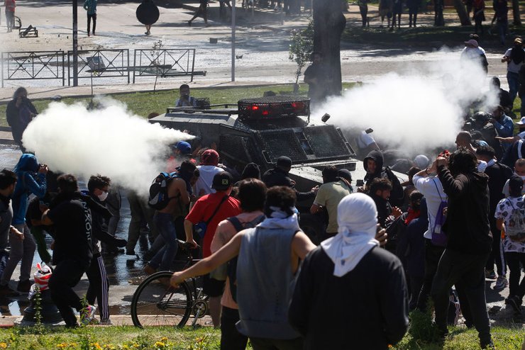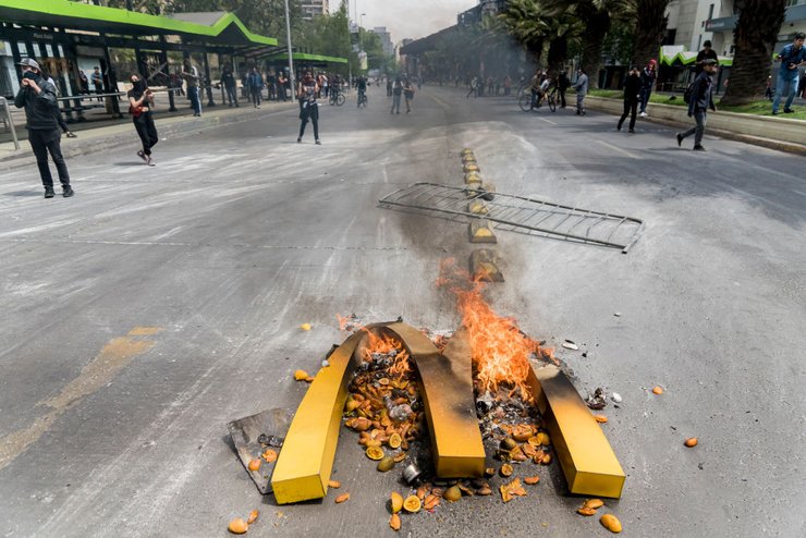 Наиболее масштабные беспорядки пришлись на минувшие выходные. В Сантьяго и других чилийских городах протестующие поджигали автобусы, громили станции метро и противостояли спецподразделениям полиции.