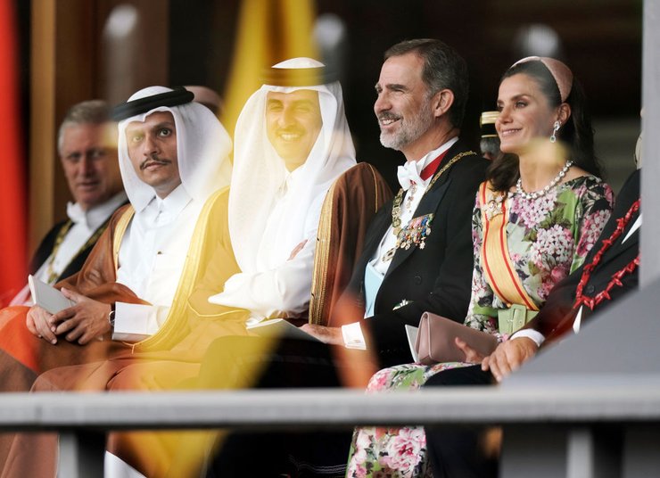 Король Испании Филипп VI и королева Летисия вместе с эмиром Катара Тамимом бин Хамад Аль Тани.