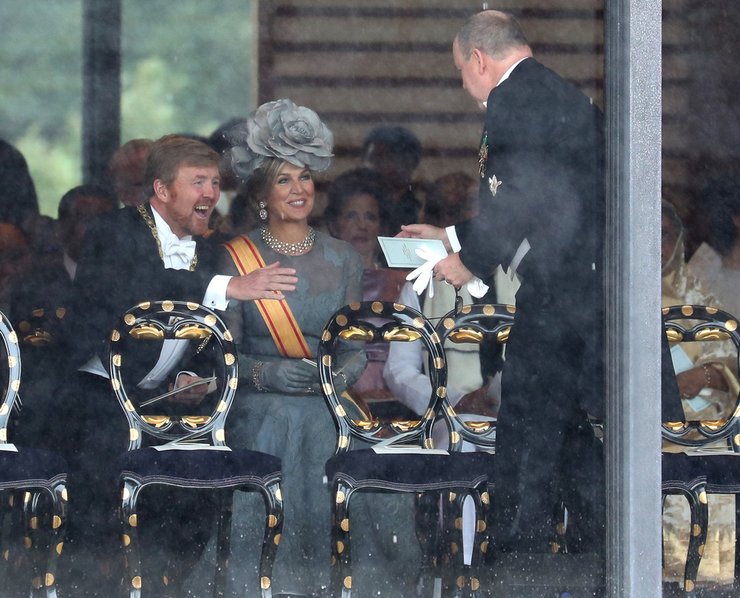 Король Нидерландов Виллем-Александр и королева Максима приветствуют князя Монако Альберта II.