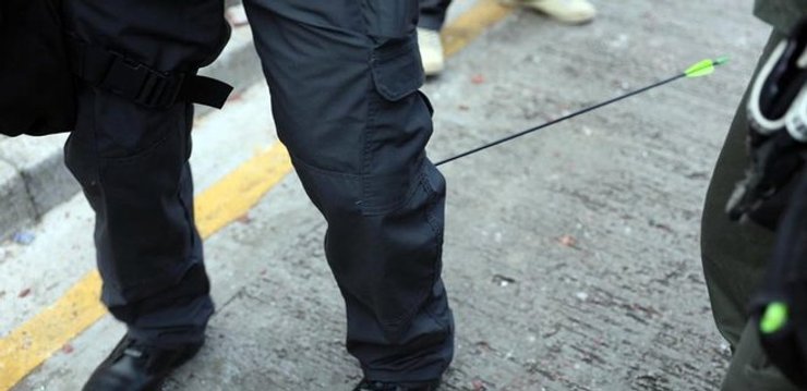 В Гонконге протестующие подстрелили офицера полиции из лука