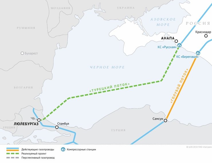 - Весной 2018 года "Газпром" заявил о завершении строительства первой нитки "Турецкого потока".