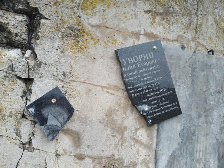 По его словам, мемориальные гранитные плиты были установлены на стенах долговременной огневой точки 417 Тираспольского укрепрайона фортификационной "линии Сталина".