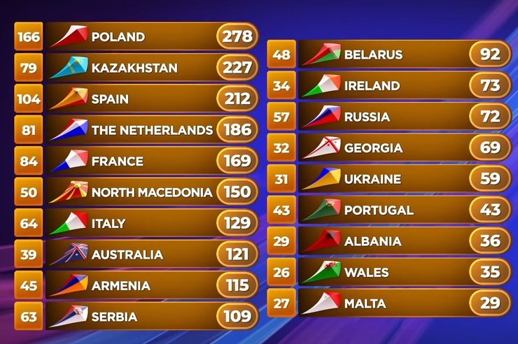 Вторым стал участник из Казахстана Ержан Максим с треком Armanyńnan Qalma, третьей – испанка Мелани Гарсиа, которая исполнила песню Marte.