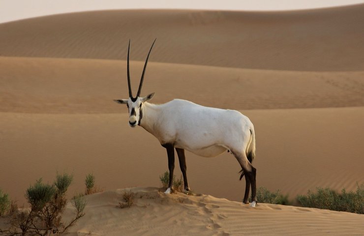 Саблерогая антилопа, или сахарский орикс. Ранее они населяли степи и пустыни Северной Африки, однако их количество резко сократилось из-за охоты. Последнего дикого орикса видели в конце XX века.