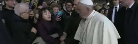 Понтифик во вторник, 31 декабря, общался с верующими на улице. Одна из женщин схватила Франциска за руку из-за заграждения, когда тот проходил мимо, в ответ он несколько раз шлепнул ее по рукам.