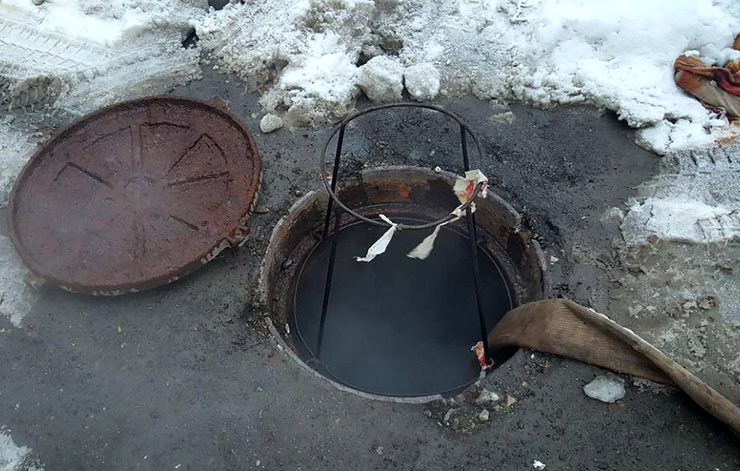 Мини-отель на девять номеров располагается в цокольном этаже жилого здания. Его затопило. Сейчас участок трубы с повреждением очищают: по всей видимости, готовятся менять на новый.