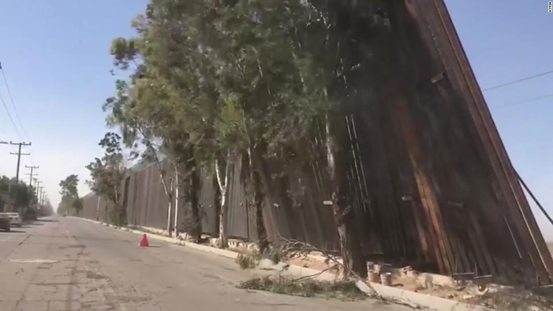 Стальные панели высотой более 9 метров начали наклоняться под опасным углом в результате сильного ветра. Инцидент произошел на границе между калифорнийским городом Калексико и мексиканским Мехикали.